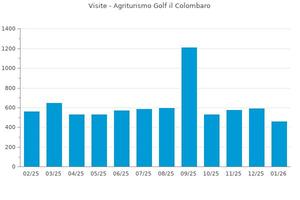 Nella retta verticale il numero delle Visite - Nella retta orizzontale gli ultimi 12 mesi (se disponibili), escluso il mese corrente, che viene automaticamente aggiunto/visualizzato il primo giorno del mese successivo.