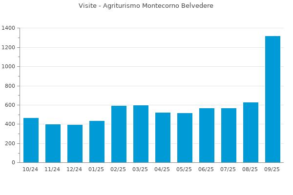 Nella retta verticale il numero delle Visite - Nella retta orizzontale gli ultimi 12 mesi (se disponibili), escluso il mese corrente, che viene automaticamente aggiunto/visualizzato il primo giorno del mese successivo.
