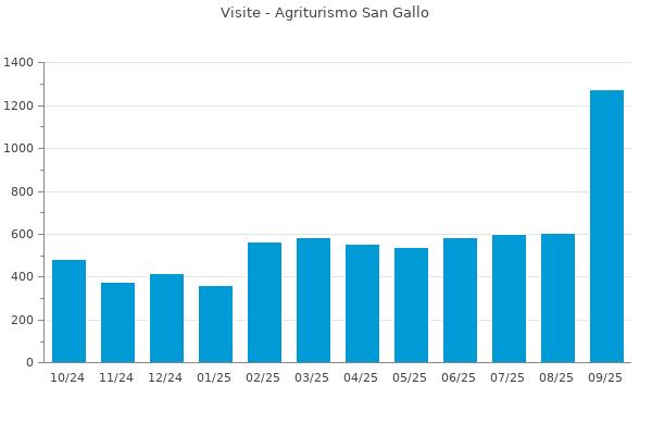 Nella retta verticale il numero delle Visite - Nella retta orizzontale gli ultimi 12 mesi (se disponibili), escluso il mese corrente, che viene automaticamente aggiunto/visualizzato il primo giorno del mese successivo.