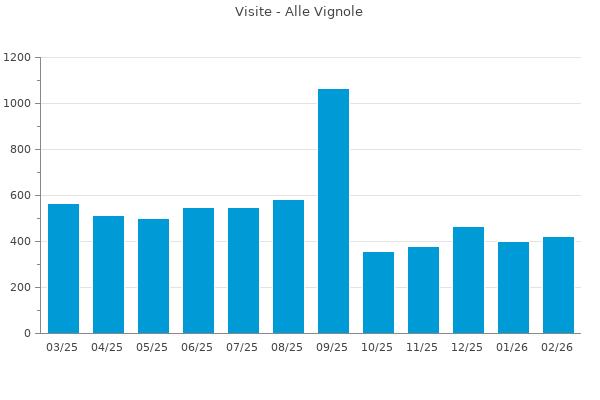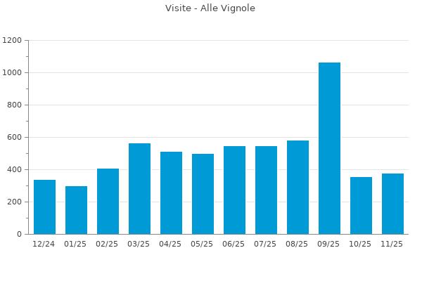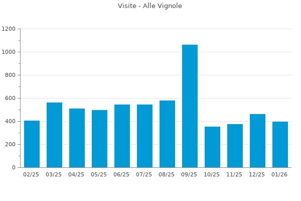 Nella retta verticale il numero delle Visite - Nella retta orizzontale gli ultimi 12 mesi (se disponibili), escluso il mese corrente, che viene automaticamente aggiunto/visualizzato il primo giorno del mese successivo.