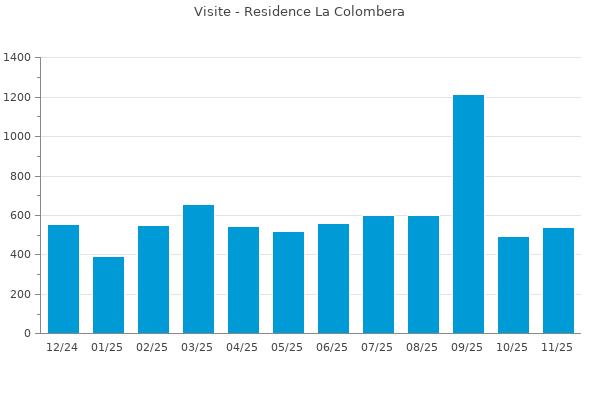 Nella retta verticale il numero delle Visite - Nella retta orizzontale gli ultimi 12 mesi (se disponibili), escluso il mese corrente, che viene automaticamente aggiunto/visualizzato il primo giorno del mese successivo.