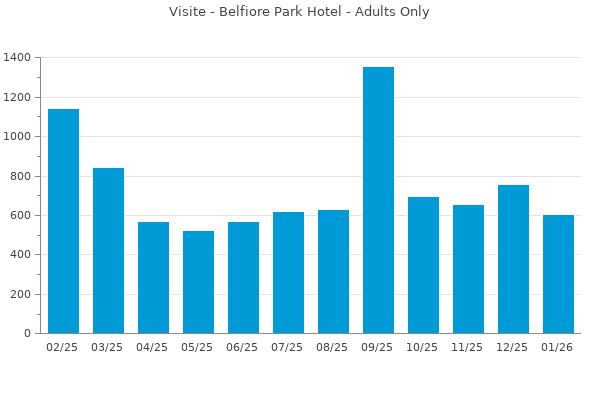 Nella retta verticale il numero delle Visite - Nella retta orizzontale gli ultimi 12 mesi (se disponibili), escluso il mese corrente, che viene automaticamente aggiunto/visualizzato il primo giorno del mese successivo.
