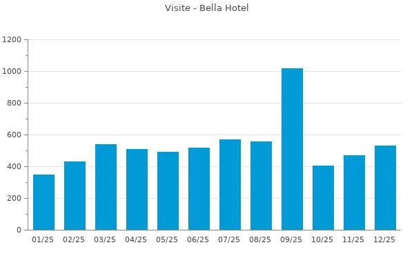 Nella retta verticale il numero delle Visite - Nella retta orizzontale gli ultimi 12 mesi (se disponibili), escluso il mese corrente, che viene automaticamente aggiunto/visualizzato il primo giorno del mese successivo.