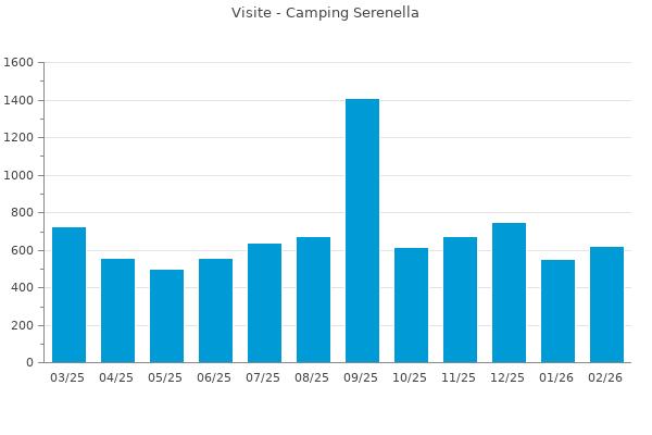 Statistiche delle visite al sito: https://www.booking.com/hotel/it/camping-serenella.en-gb.html?utm_source=Gardalake.com&utm_medium=referral provenienti da: https://www.gardalake.com/place/camping-serenella-bardolino/