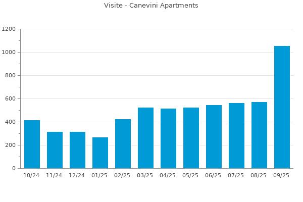 Nella retta verticale il numero delle Visite - Nella retta orizzontale gli ultimi 12 mesi (se disponibili), escluso il mese corrente, che viene automaticamente aggiunto/visualizzato il primo giorno del mese successivo.
