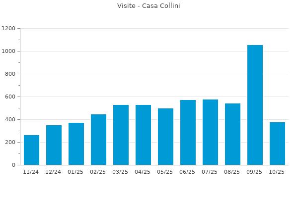Nella retta verticale il numero delle Visite - Nella retta orizzontale gli ultimi 12 mesi (se disponibili), escluso il mese corrente, che viene automaticamente aggiunto/visualizzato il primo giorno del mese successivo.