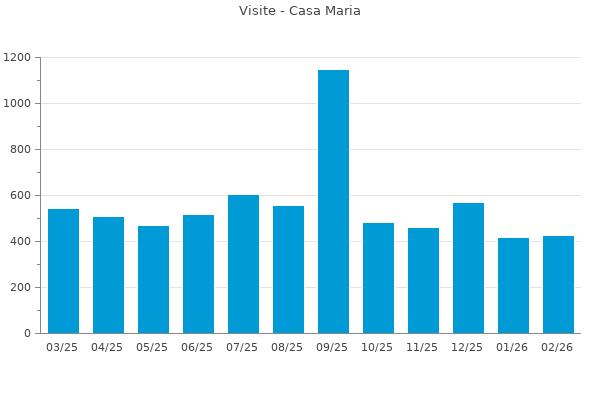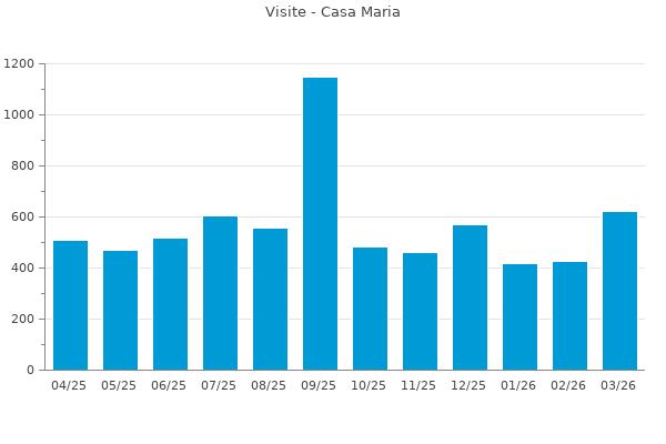 Nella retta verticale il numero delle Visite - Nella retta orizzontale gli ultimi 12 mesi (se disponibili), escluso il mese corrente, che viene automaticamente aggiunto/visualizzato il primo giorno del mese successivo.