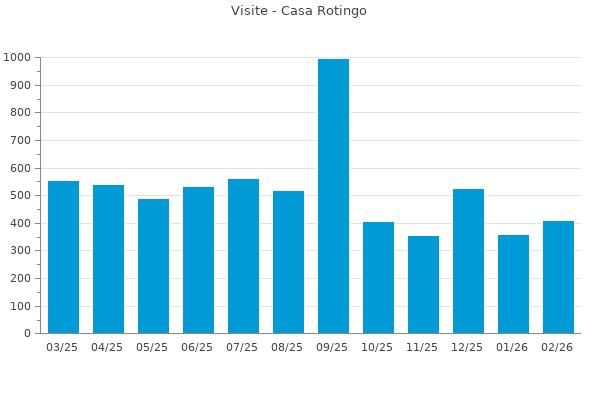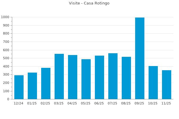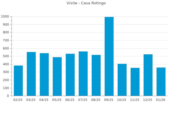 Nella retta verticale il numero delle Visite - Nella retta orizzontale gli ultimi 12 mesi (se disponibili), escluso il mese corrente, che viene automaticamente aggiunto/visualizzato il primo giorno del mese successivo.