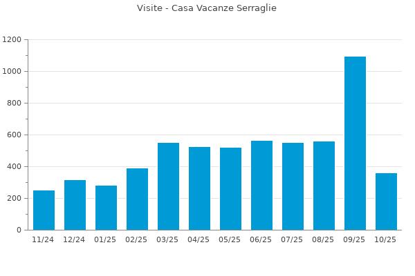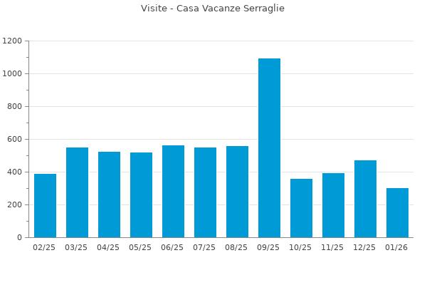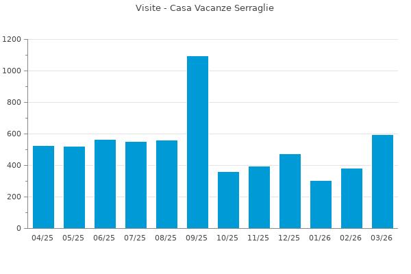 Statistiche delle visite al sito: https://www.booking.com/hotel/it/casa-vacanze-serraglie.en-gb.html?utm_source=Gardalake.com&utm_medium=referral provenienti da: https://www.gardalake.com/place/casa-vacanze-serraglie/