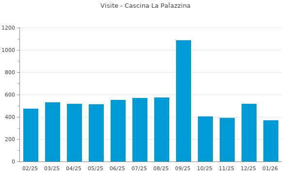 Statistiche delle visite al sito: https://www.booking.com/hotel/it/cascina-la-palazzina.en-gb.html?utm_source=Gardalake.com&utm_medium=referral provenienti da: https://www.gardalake.com/place/cascina-la-palazzina-salo/