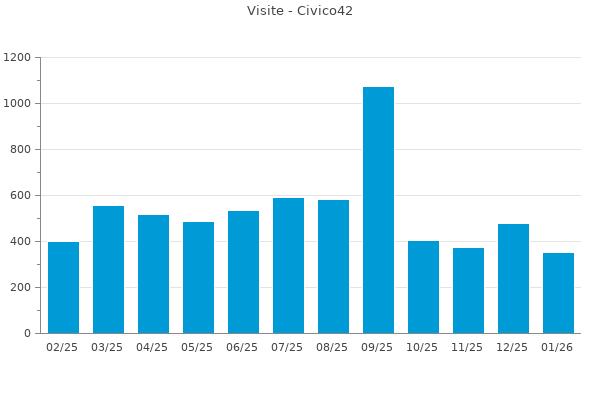 Nella retta verticale il numero delle Visite - Nella retta orizzontale gli ultimi 12 mesi (se disponibili), escluso il mese corrente, che viene automaticamente aggiunto/visualizzato il primo giorno del mese successivo.