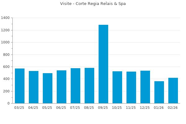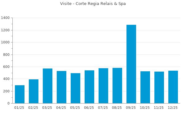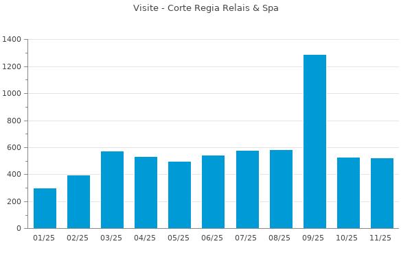 Statistiche delle visite al sito: https://www.booking.com/hotel/it/corte-regia-relais-amp-spa.en-gb.html?utm_source=Gardalake.com&utm_medium=referral provenienti da: https://www.gardalake.com/place/corte-regia-relais-valeggio/