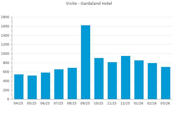 Statistiche delle visite al sito: https://www.booking.com/hotel/it/gardaland-resort.en-gb.html?utm_source=Gardalake.com&utm_medium=referral provenienti da: https://www.gardalake.com/place/gardaland-hotel/