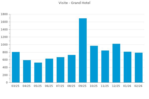 Nella retta verticale il numero delle Visite - Nella retta orizzontale gli ultimi 12 mesi (se disponibili), escluso il mese corrente, che viene automaticamente aggiunto/visualizzato il primo giorno del mese successivo.