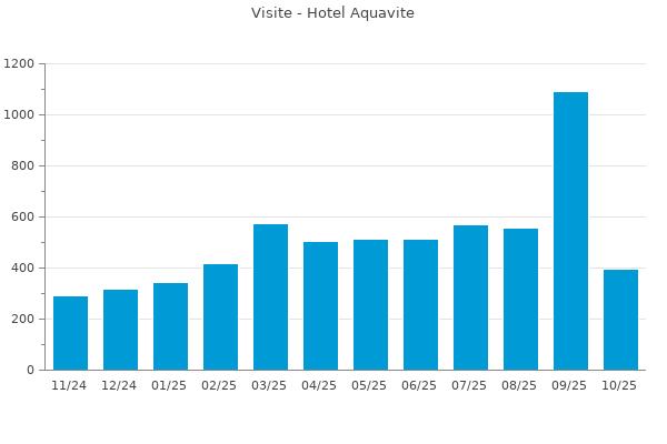 Nella retta verticale il numero delle Visite - Nella retta orizzontale gli ultimi 12 mesi (se disponibili), escluso il mese corrente, che viene automaticamente aggiunto/visualizzato il primo giorno del mese successivo.