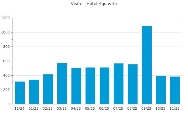 Nella retta verticale il numero delle Visite - Nella retta orizzontale gli ultimi 12 mesi (se disponibili), escluso il mese corrente, che viene automaticamente aggiunto/visualizzato il primo giorno del mese successivo.