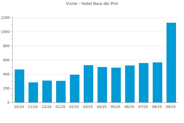 Nella retta verticale il numero delle Visite - Nella retta orizzontale gli ultimi 12 mesi (se disponibili), escluso il mese corrente, che viene automaticamente aggiunto/visualizzato il primo giorno del mese successivo.