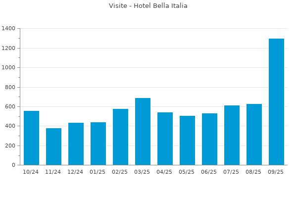 Nella retta verticale il numero delle Visite - Nella retta orizzontale gli ultimi 12 mesi (se disponibili), escluso il mese corrente, che viene automaticamente aggiunto/visualizzato il primo giorno del mese successivo.