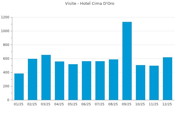 Nella retta verticale il numero delle Visite - Nella retta orizzontale gli ultimi 12 mesi (se disponibili), escluso il mese corrente, che viene automaticamente aggiunto/visualizzato il primo giorno del mese successivo.