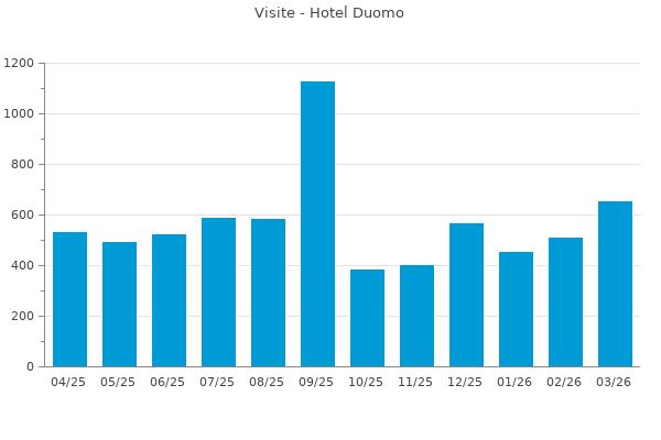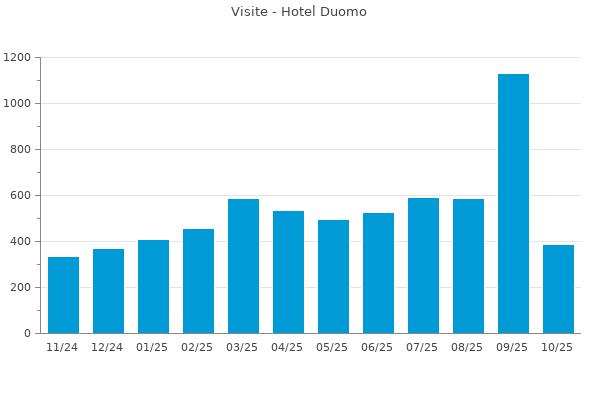 Nella retta verticale il numero delle Visite - Nella retta orizzontale gli ultimi 12 mesi (se disponibili), escluso il mese corrente, che viene automaticamente aggiunto/visualizzato il primo giorno del mese successivo.