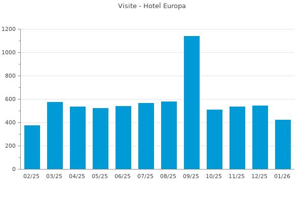 Nella retta verticale il numero delle Visite - Nella retta orizzontale gli ultimi 12 mesi (se disponibili), escluso il mese corrente, che viene automaticamente aggiunto/visualizzato il primo giorno del mese successivo.
