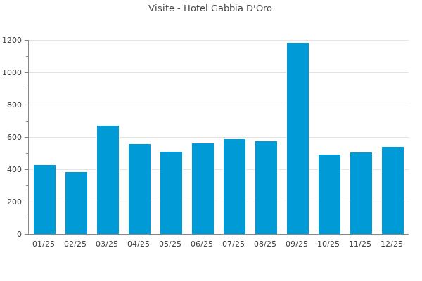 Nella retta verticale il numero delle Visite - Nella retta orizzontale gli ultimi 12 mesi (se disponibili), escluso il mese corrente, che viene automaticamente aggiunto/visualizzato il primo giorno del mese successivo.