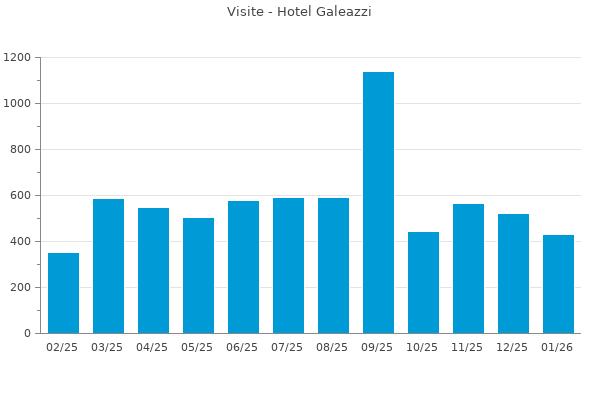Nella retta verticale il numero delle Visite - Nella retta orizzontale gli ultimi 12 mesi (se disponibili), escluso il mese corrente, che viene automaticamente aggiunto/visualizzato il primo giorno del mese successivo.