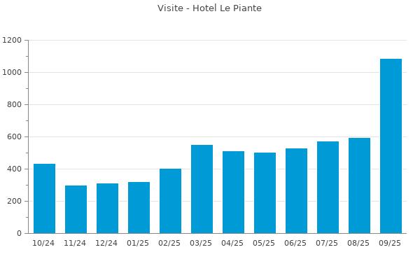 Nella retta verticale il numero delle Visite - Nella retta orizzontale gli ultimi 12 mesi (se disponibili), escluso il mese corrente, che viene automaticamente aggiunto/visualizzato il primo giorno del mese successivo.
