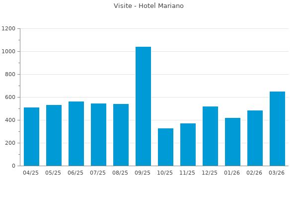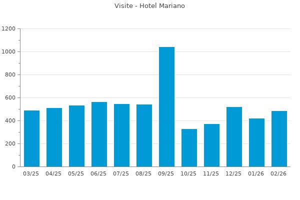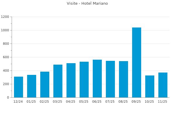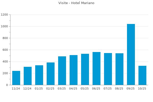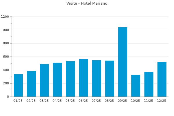Nella retta verticale il numero delle Visite - Nella retta orizzontale gli ultimi 12 mesi (se disponibili), escluso il mese corrente, che viene automaticamente aggiunto/visualizzato il primo giorno del mese successivo.