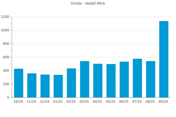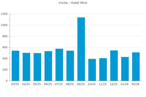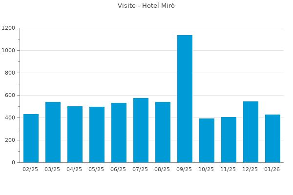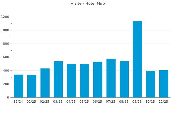 Nella retta verticale il numero delle Visite - Nella retta orizzontale gli ultimi 12 mesi (se disponibili), escluso il mese corrente, che viene automaticamente aggiunto/visualizzato il primo giorno del mese successivo.