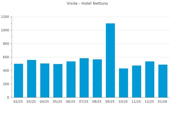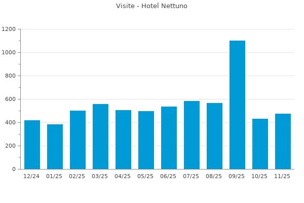 Nella retta verticale il numero delle Visite - Nella retta orizzontale gli ultimi 12 mesi (se disponibili), escluso il mese corrente, che viene automaticamente aggiunto/visualizzato il primo giorno del mese successivo.