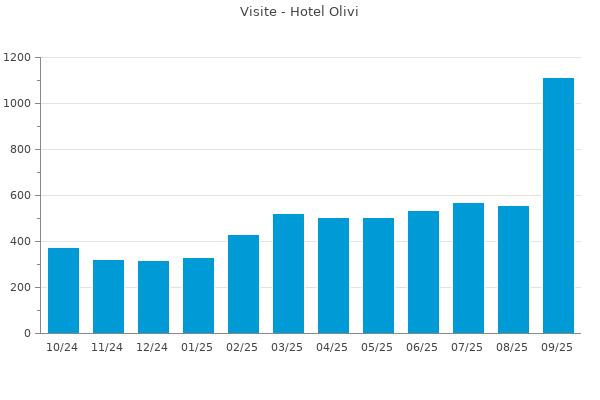 Nella retta verticale il numero delle Visite - Nella retta orizzontale gli ultimi 12 mesi (se disponibili), escluso il mese corrente, che viene automaticamente aggiunto/visualizzato il primo giorno del mese successivo.