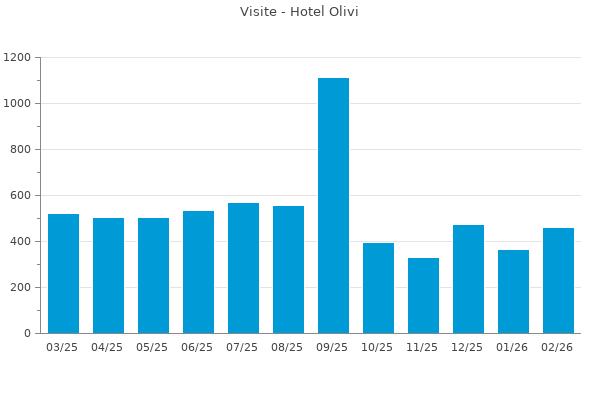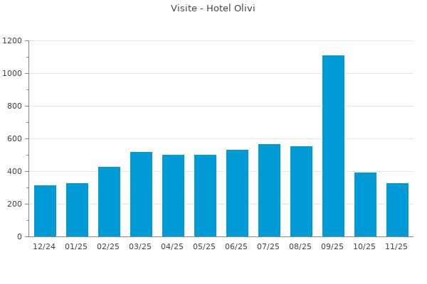 Nella retta verticale il numero delle Visite - Nella retta orizzontale gli ultimi 12 mesi (se disponibili), escluso il mese corrente, che viene automaticamente aggiunto/visualizzato il primo giorno del mese successivo.