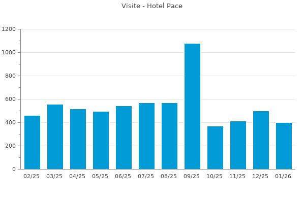 Nella retta verticale il numero delle Visite - Nella retta orizzontale gli ultimi 12 mesi (se disponibili), escluso il mese corrente, che viene automaticamente aggiunto/visualizzato il primo giorno del mese successivo.