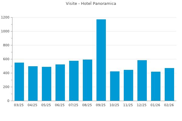 Nella retta verticale il numero delle Visite - Nella retta orizzontale gli ultimi 12 mesi (se disponibili), escluso il mese corrente, che viene automaticamente aggiunto/visualizzato il primo giorno del mese successivo.