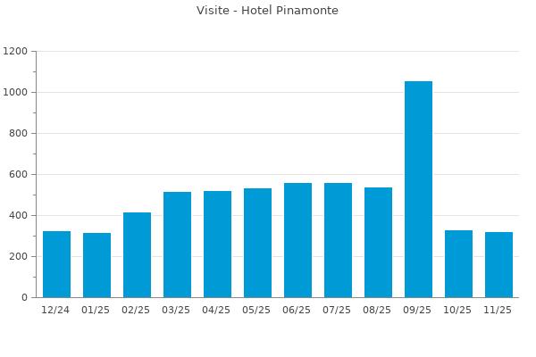 Nella retta verticale il numero delle Visite - Nella retta orizzontale gli ultimi 12 mesi (se disponibili), escluso il mese corrente, che viene automaticamente aggiunto/visualizzato il primo giorno del mese successivo.