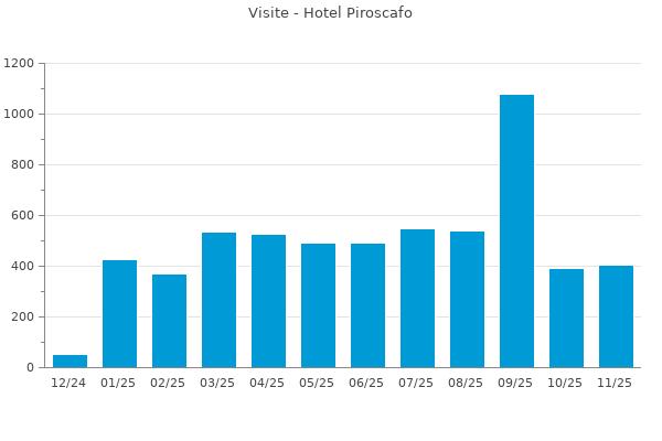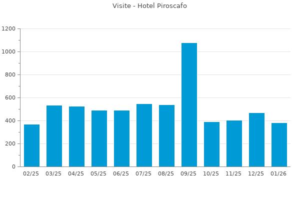Nella retta verticale il numero delle Visite - Nella retta orizzontale gli ultimi 12 mesi (se disponibili), escluso il mese corrente, che viene automaticamente aggiunto/visualizzato il primo giorno del mese successivo.