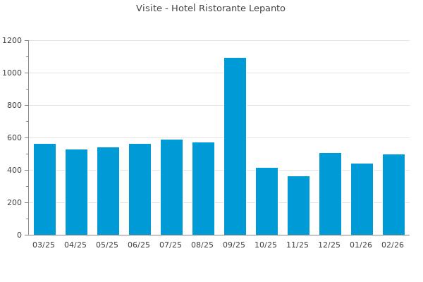 Statistiche delle visite al sito: https://www.booking.com/hotel/it/ristorante-lepanto.en-gb.html?utm_source=Gardalake.com&utm_medium=referral provenienti da: https://www.gardalake.com/place/hotel-ristorante-lepanto-salo/
