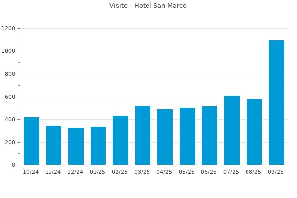 Nella retta verticale il numero delle Visite - Nella retta orizzontale gli ultimi 12 mesi (se disponibili), escluso il mese corrente, che viene automaticamente aggiunto/visualizzato il primo giorno del mese successivo.