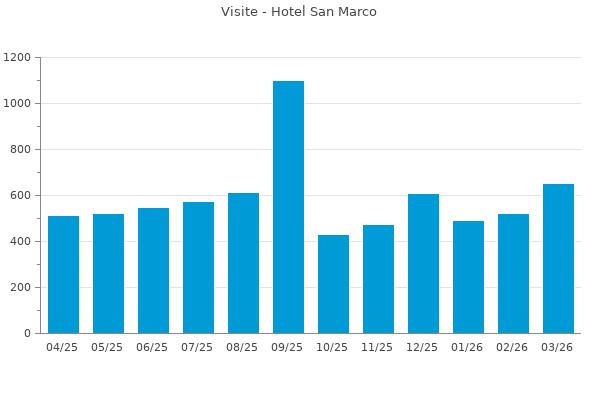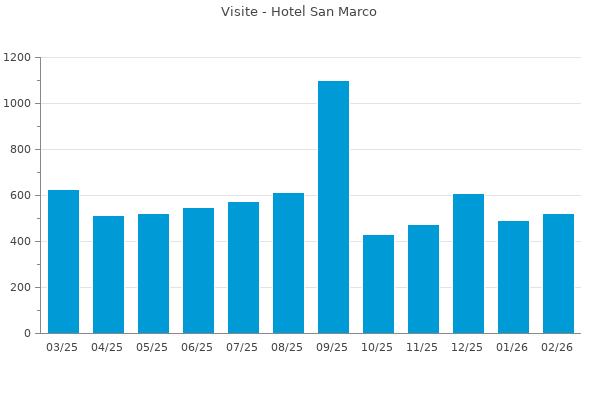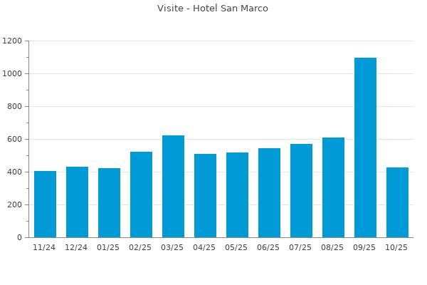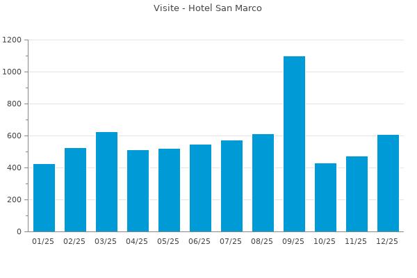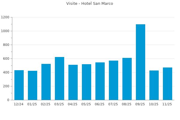 Nella retta verticale il numero delle Visite - Nella retta orizzontale gli ultimi 12 mesi (se disponibili), escluso il mese corrente, che viene automaticamente aggiunto/visualizzato il primo giorno del mese successivo.