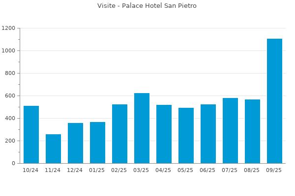 Nella retta verticale il numero delle Visite - Nella retta orizzontale gli ultimi 12 mesi (se disponibili), escluso il mese corrente, che viene automaticamente aggiunto/visualizzato il primo giorno del mese successivo.