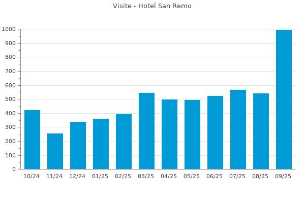 Nella retta verticale il numero delle Visite - Nella retta orizzontale gli ultimi 12 mesi (se disponibili), escluso il mese corrente, che viene automaticamente aggiunto/visualizzato il primo giorno del mese successivo.