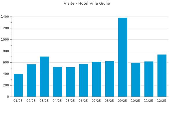 Nella retta verticale il numero delle Visite - Nella retta orizzontale gli ultimi 12 mesi (se disponibili), escluso il mese corrente, che viene automaticamente aggiunto/visualizzato il primo giorno del mese successivo.
