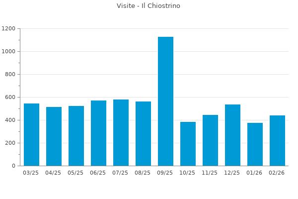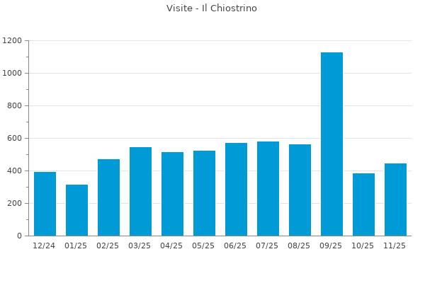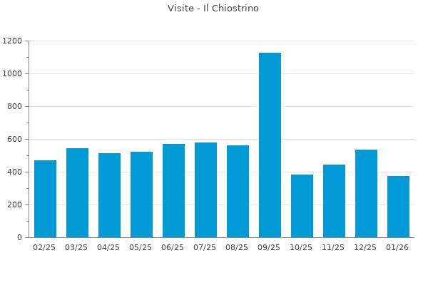 Nella retta verticale il numero delle Visite - Nella retta orizzontale gli ultimi 12 mesi (se disponibili), escluso il mese corrente, che viene automaticamente aggiunto/visualizzato il primo giorno del mese successivo.