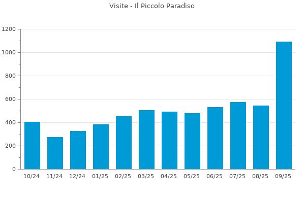 Nella retta verticale il numero delle Visite - Nella retta orizzontale gli ultimi 12 mesi (se disponibili), escluso il mese corrente, che viene automaticamente aggiunto/visualizzato il primo giorno del mese successivo.