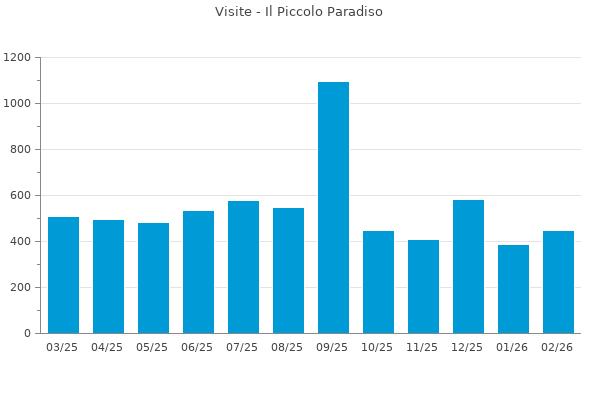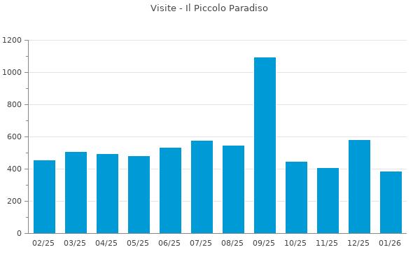 Nella retta verticale il numero delle Visite - Nella retta orizzontale gli ultimi 12 mesi (se disponibili), escluso il mese corrente, che viene automaticamente aggiunto/visualizzato il primo giorno del mese successivo.