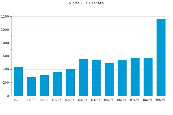 Nella retta verticale il numero delle Visite - Nella retta orizzontale gli ultimi 12 mesi (se disponibili), escluso il mese corrente, che viene automaticamente aggiunto/visualizzato il primo giorno del mese successivo.
