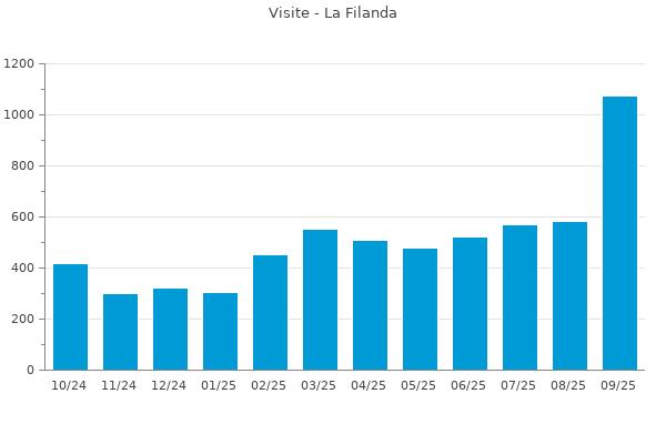 Nella retta verticale il numero delle Visite - Nella retta orizzontale gli ultimi 12 mesi (se disponibili), escluso il mese corrente, che viene automaticamente aggiunto/visualizzato il primo giorno del mese successivo.