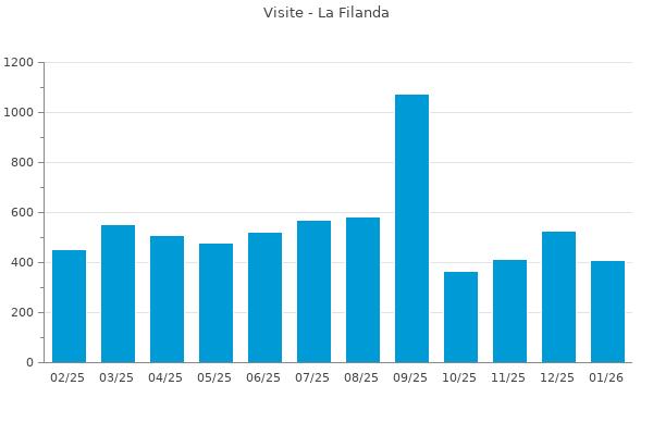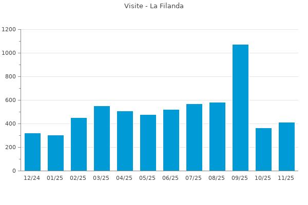 Nella retta verticale il numero delle Visite - Nella retta orizzontale gli ultimi 12 mesi (se disponibili), escluso il mese corrente, che viene automaticamente aggiunto/visualizzato il primo giorno del mese successivo.