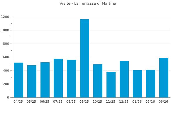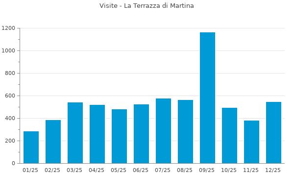 Nella retta verticale il numero delle Visite - Nella retta orizzontale gli ultimi 12 mesi (se disponibili), escluso il mese corrente, che viene automaticamente aggiunto/visualizzato il primo giorno del mese successivo.
